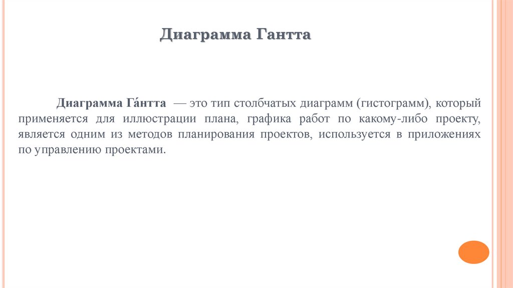 применяется для иллюстрации плана, графика работ по какому-либо проекту,
