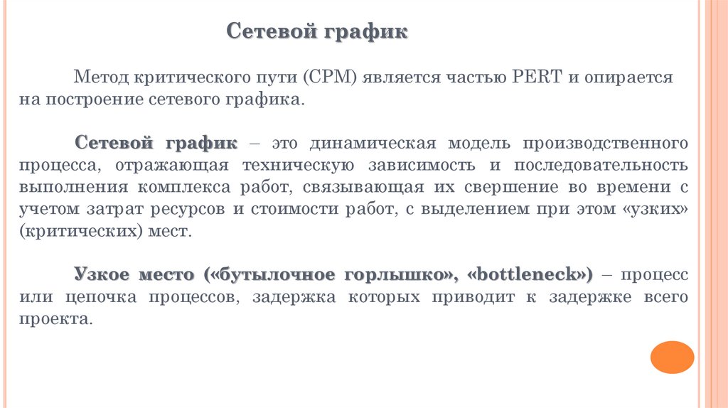 Сетевой графикМетод критического пути (CPM) является частью PERT и опирается