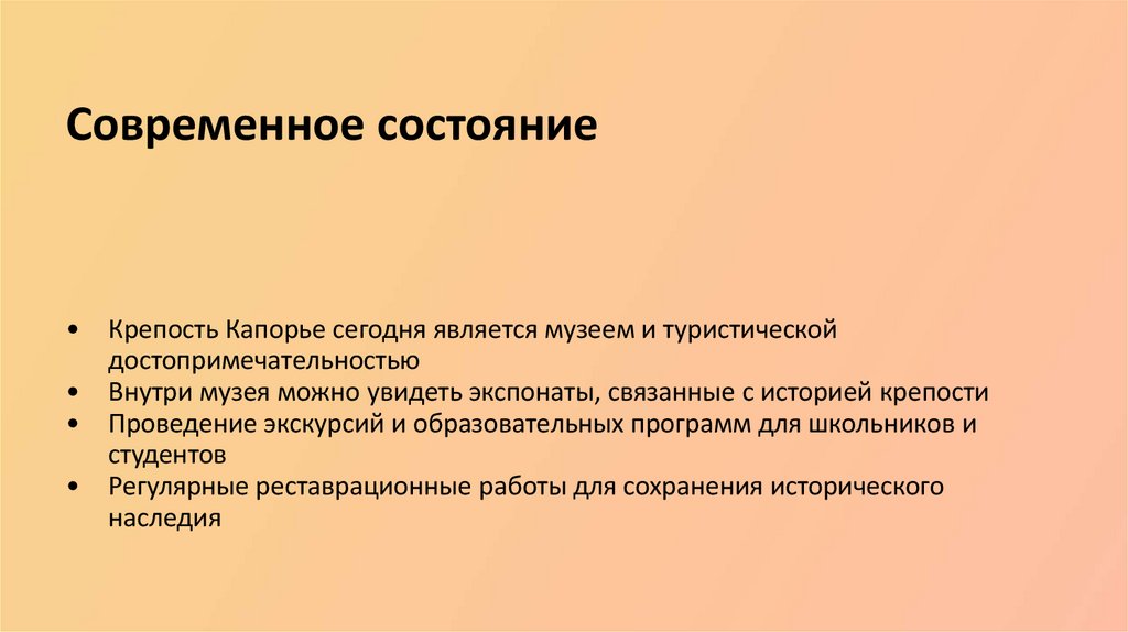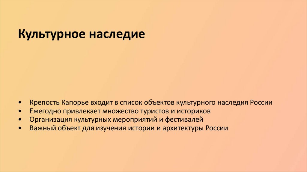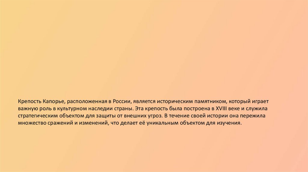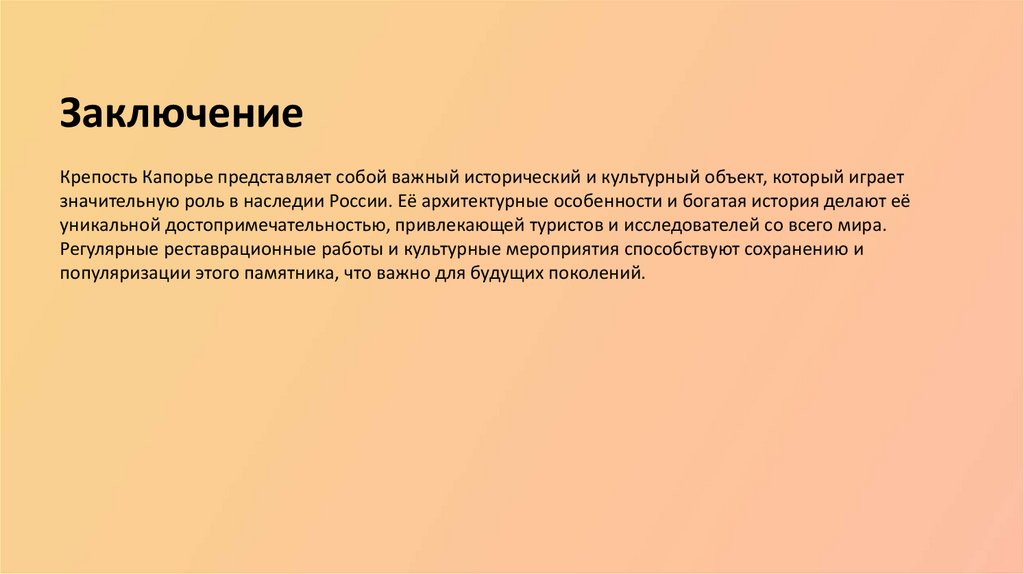 ЗаключениеКрепость Капорье представляет собой важный исторический и культурный объект, который играет