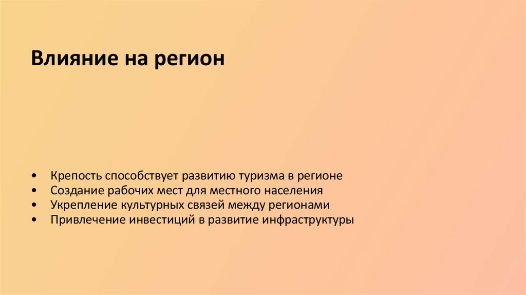 Влияние на регионКрепость способствует развитию туризма в регионе