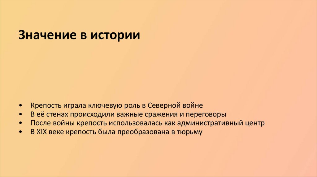 Значение в историиКрепость играла ключевую роль в Северной войне
