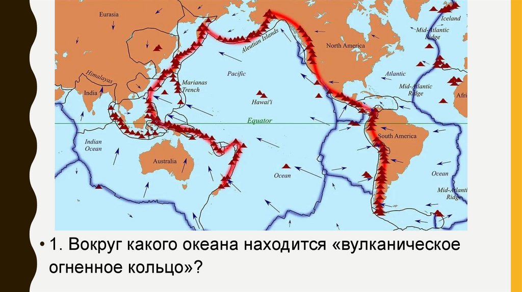 • 1. Вокруг какого океана находится «вулканическоеогненное кольцо»?
