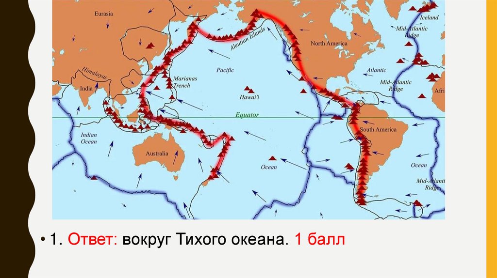 • 1. Ответ: вокруг Тихого океана. 1 балл4.
