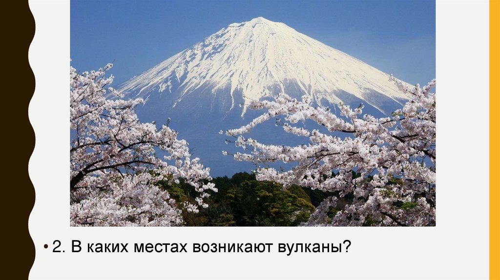• 2. В каких местах возникают вулканы?5.