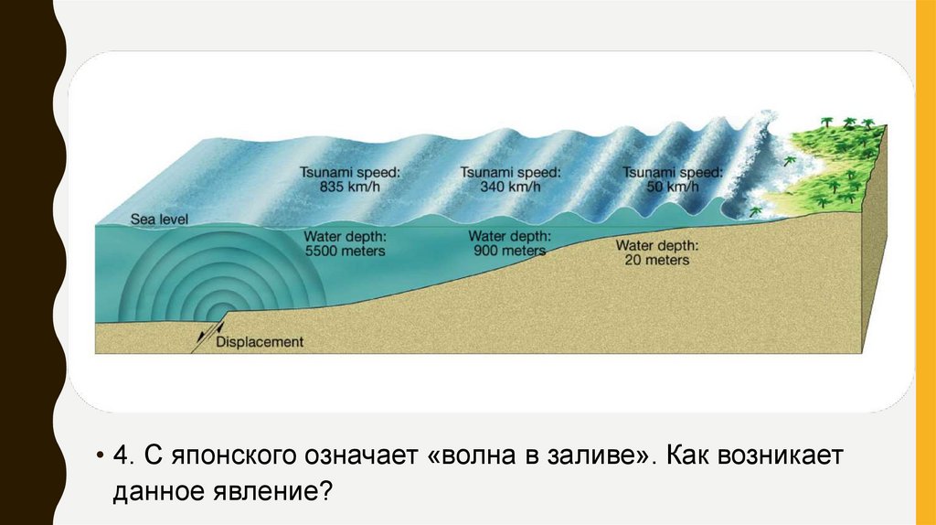 • 4. С японского означает «волна в заливе». Как возникаетданное явление?