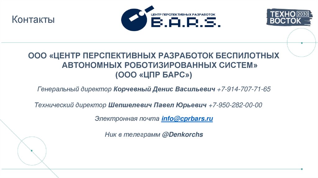 ООО «ЦЕНТР ПЕРСПЕКТИВНЫХ РАЗРАБОТОК БЕСПИЛОТНЫХАВТОНОМНЫХ РОБОТИЗИРОВАННЫХ СИСТЕМ» (ООО «ЦПР БАРС»)