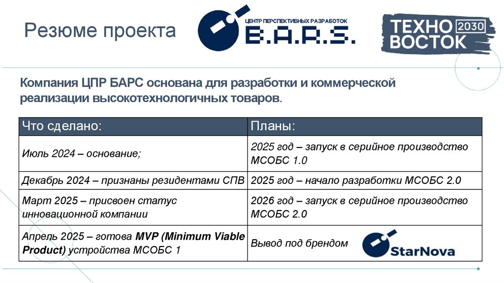 Декабрь 2024 – признаны резидентами СПВ 2025 год – начало разработки МСОБС 2.0