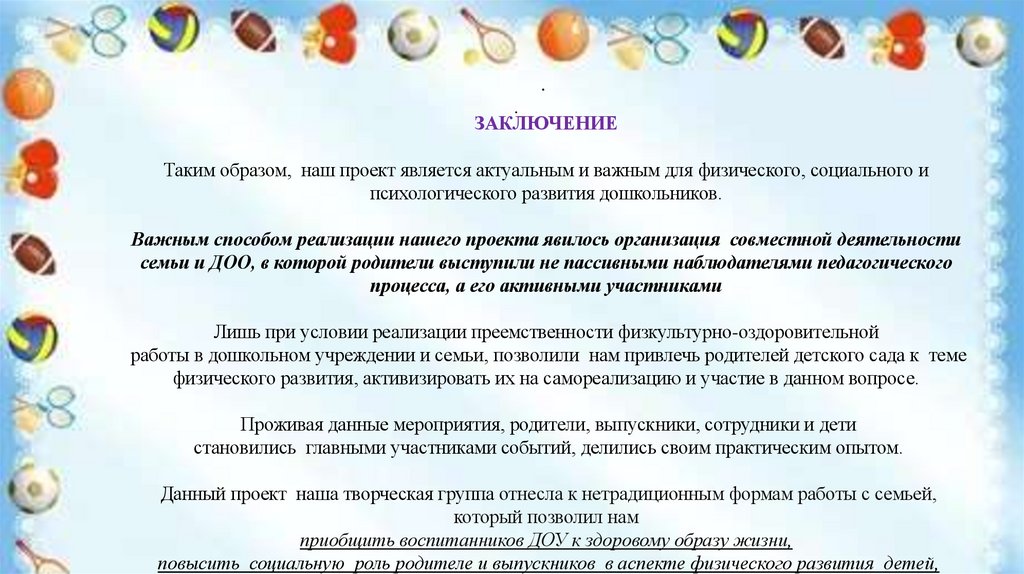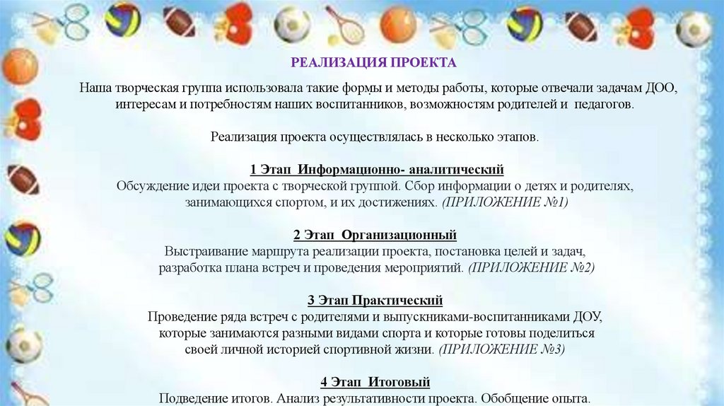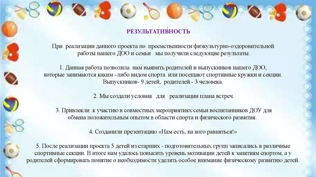 При реализации данного проекта по преемственности физкультурно-оздоровительной