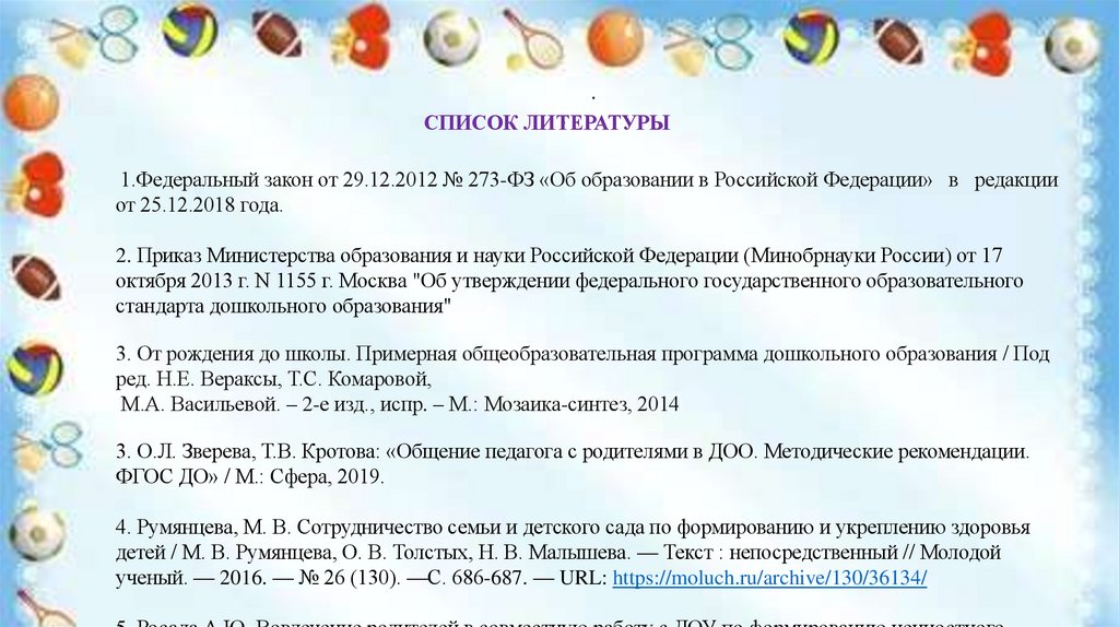 4. Румянцева, М. В. Сотрудничество семьи и детского сада по формированию и укреплению здоровья