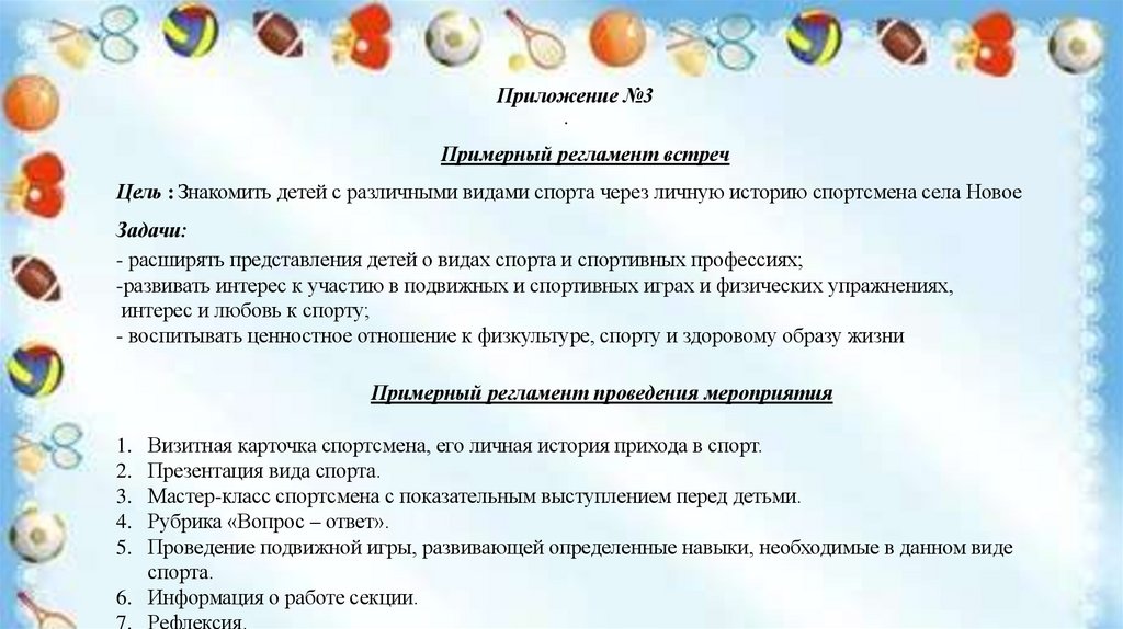 Цель : Знакомить детей с различными видами спорта через личную историю спортсмена села Новое