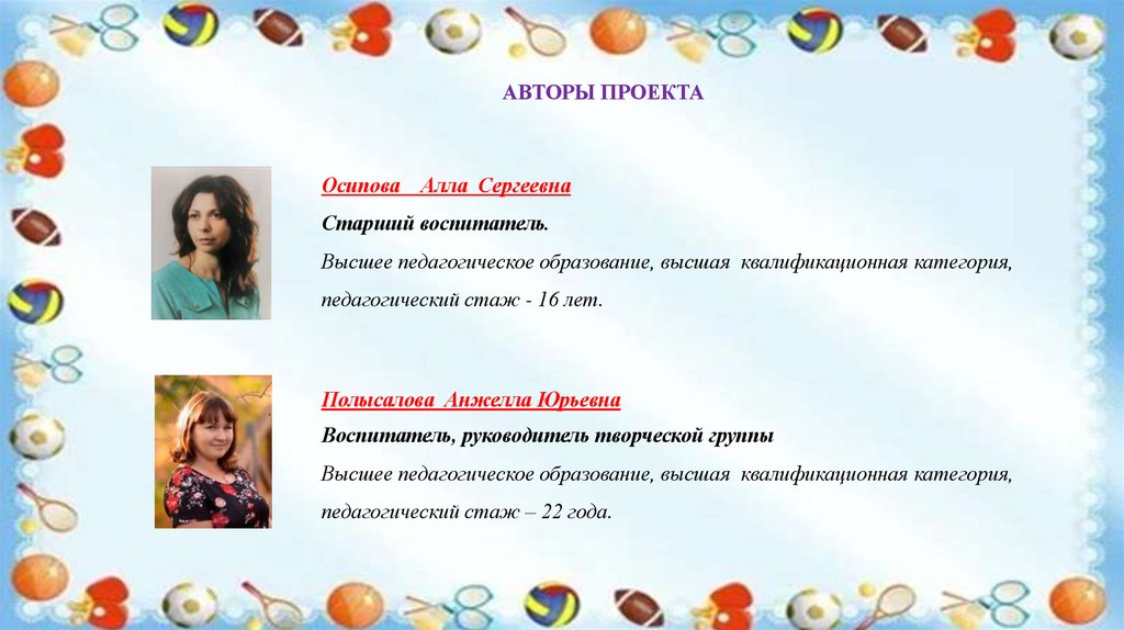 АВТОРЫ ПРОЕКТАОсипова Алла Сергеевна