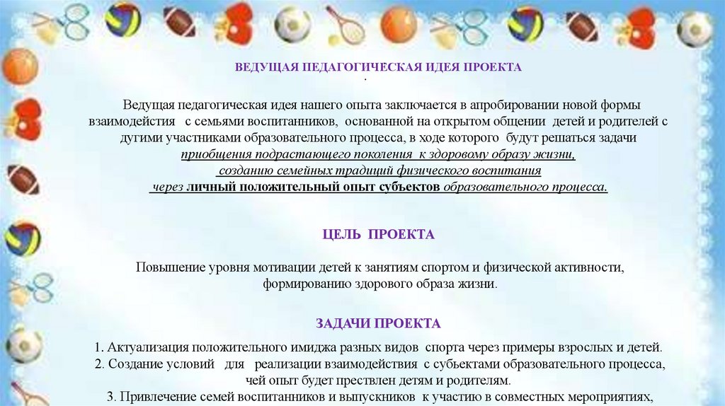 повысить социальную роль родителе и выпускников в аспекте физического развития детей,