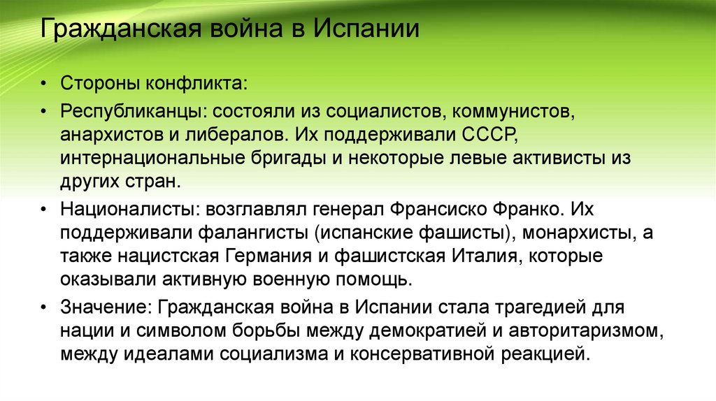 • Значение: Гражданская война в Испании стала трагедией для