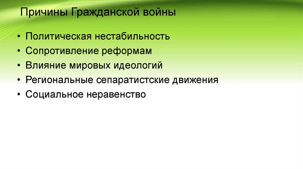 Причины Гражданской войны• Политическая нестабильность