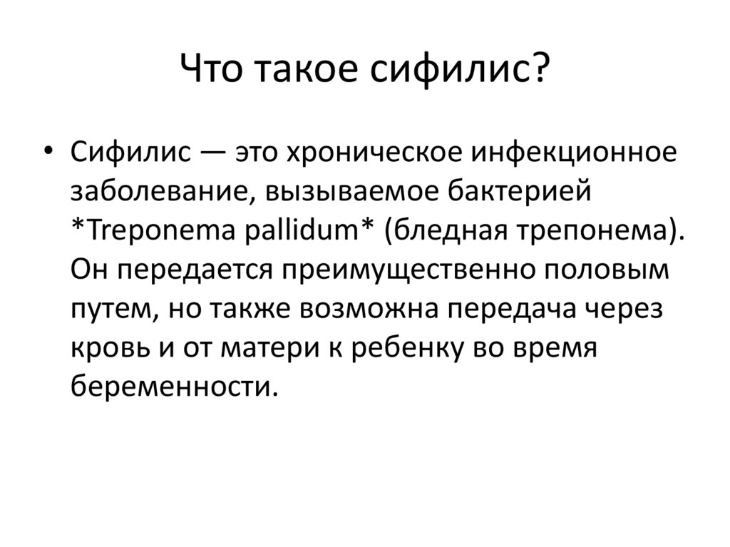 Что такое сифилис?• Сифилис — это хроническое инфекционное