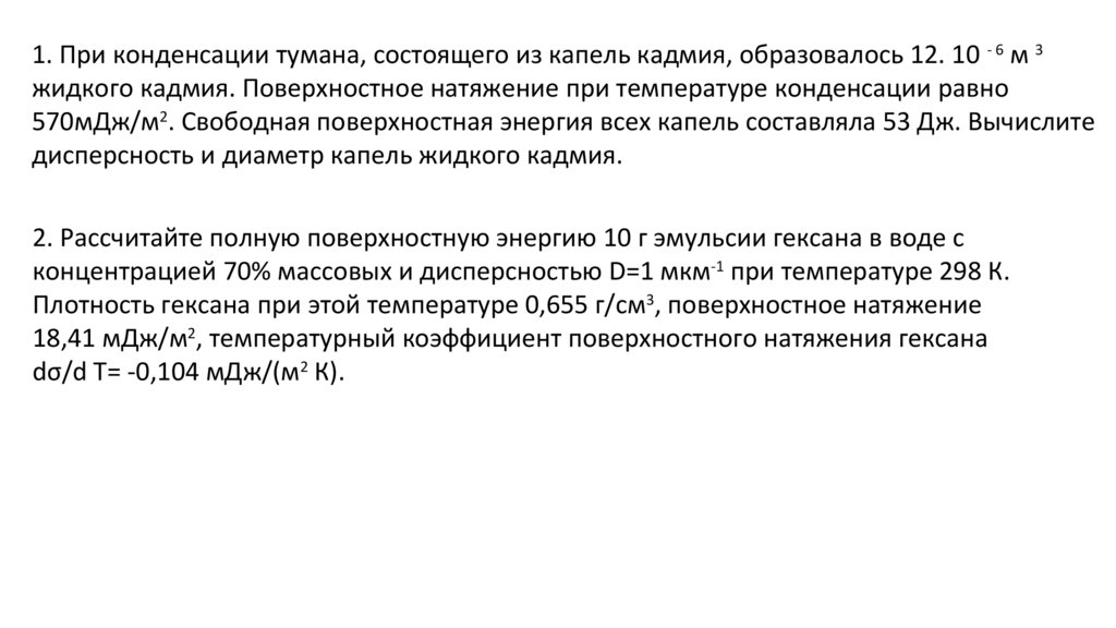 1. При конденсации тумана, состоящего из капель кадмия, образовалось 12. 10 - 6 м 3жидкого кадмия. Поверхностное натяжение при температуре конденсации равно