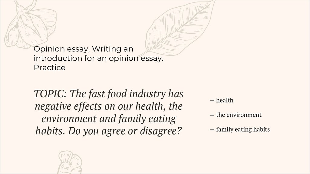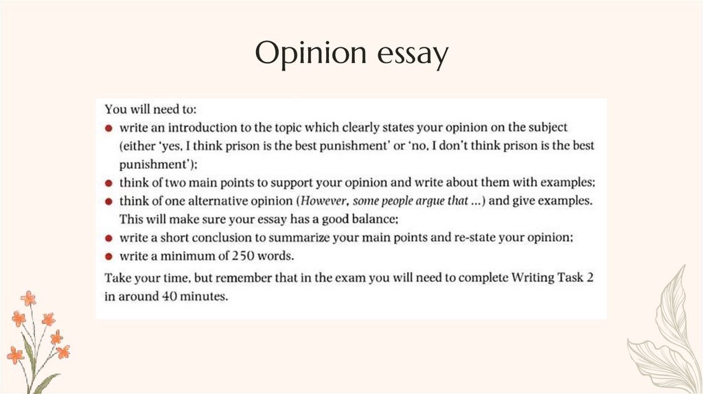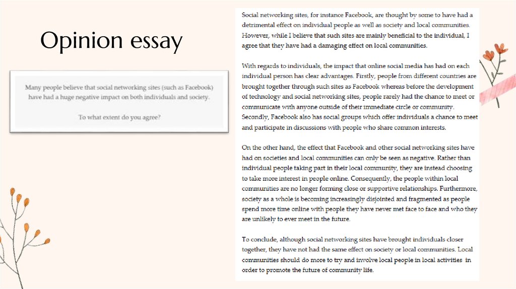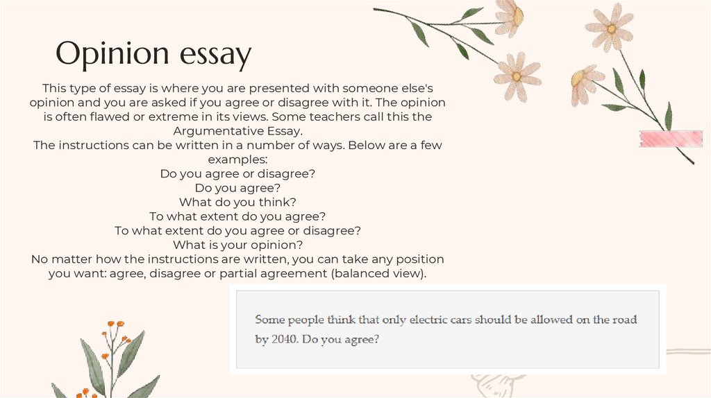 This type of essay is where you are presented with someone else'sopinion and you are asked if you agree or disagree with it. The opinion