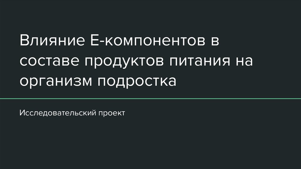 ЦельИзучить влияние Е-компонентов на здоровье подростков и сформировать рекомендации по