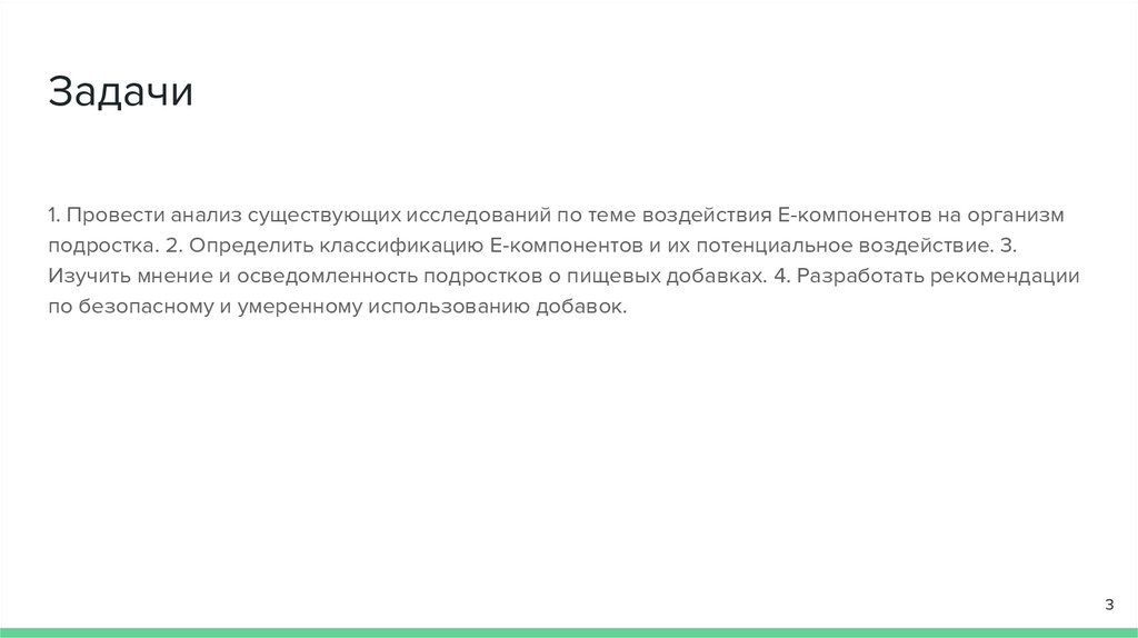 Задачи1. Провести анализ существующих исследований по теме воздействия Е-компонентов на организм