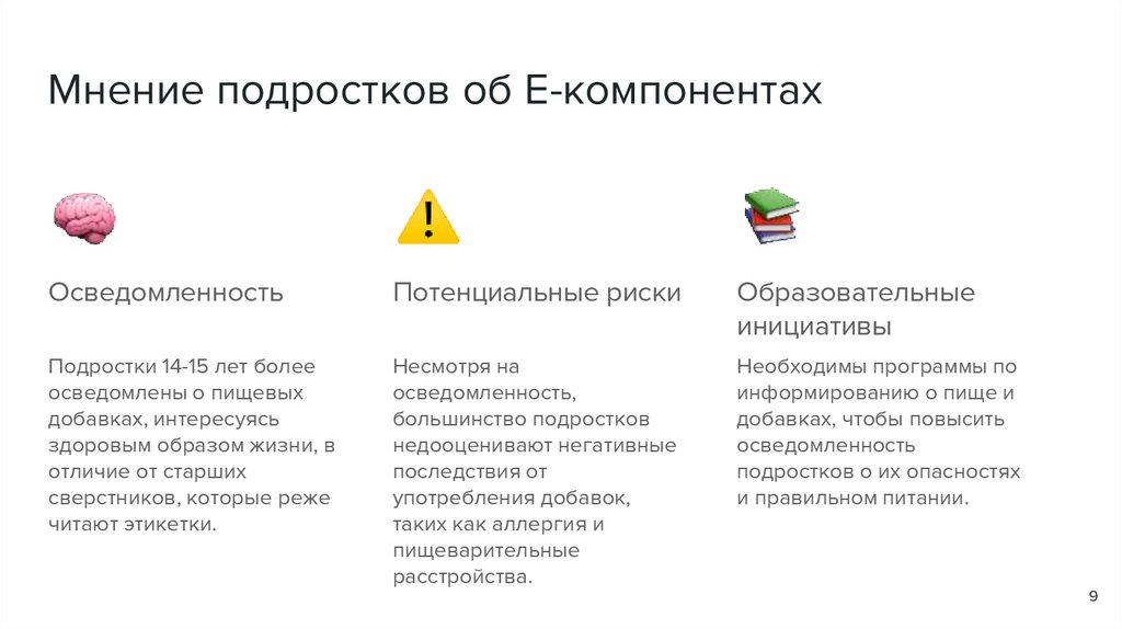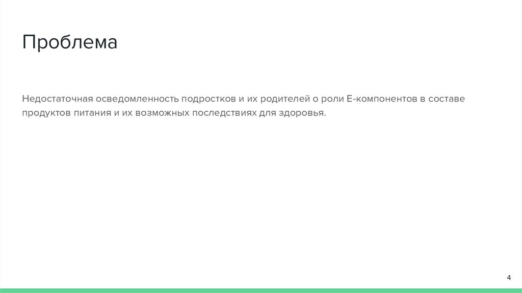 ПроблемаНедостаточная осведомленность подростков и их родителей о роли Е-компонентов в составе