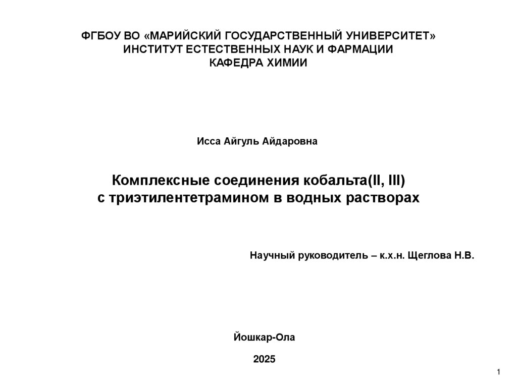 ФГБОУ ВО «МАРИЙСКИЙ ГОСУДАРСТВЕННЫЙ УНИВЕРСИТЕТ»ИНСТИТУТ ЕСТЕСТВЕННЫХ НАУК И ФАРМАЦИИ