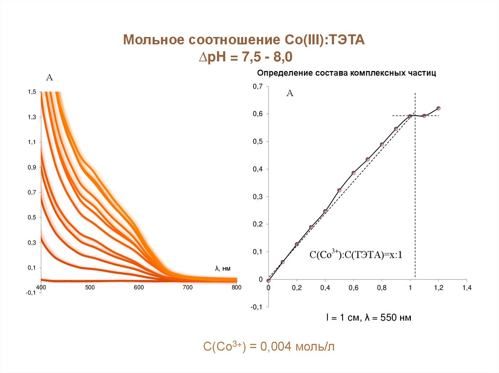 Мольное соотношение Со(III):TЭТА∆pH = 7,5 - 8,0
