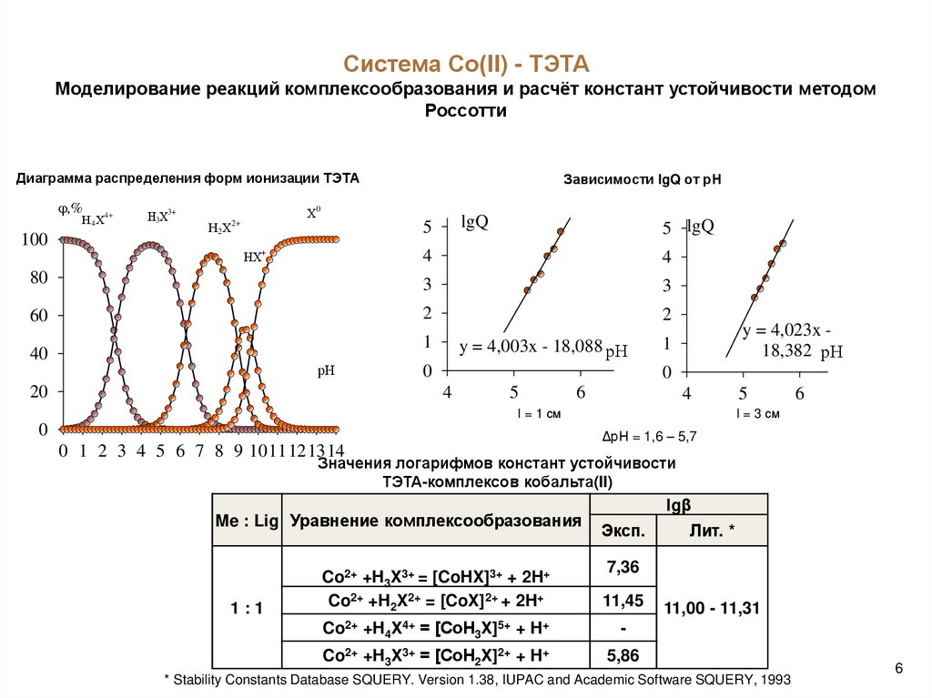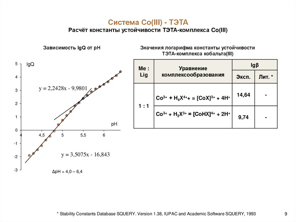 Система Со(III) - ТЭТАРасчёт константы устойчивости ТЭТА-комплекса Co(III)