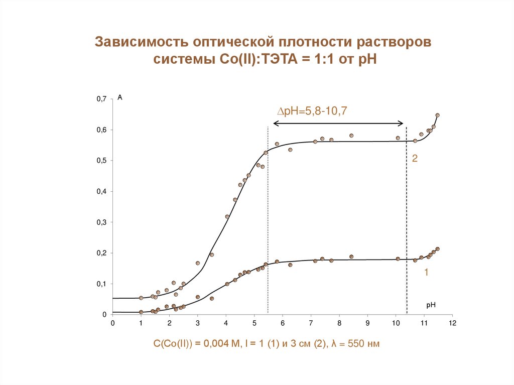 Зависимость оптической плотности растворовсистемы Со(II):ТЭТА = 1:1 от рН
