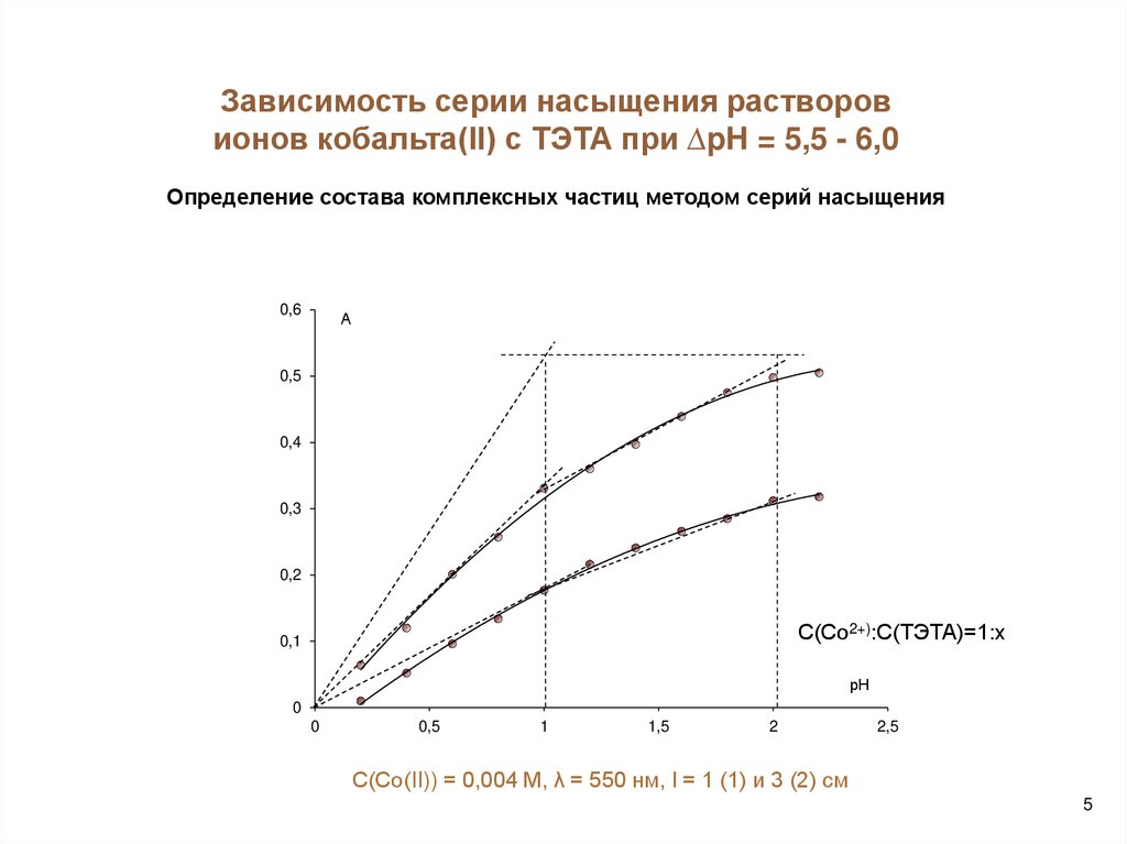 Зависимость серии насыщения растворовионов кобальта(II) с ТЭТА при ∆pH = 5,5 - 6,0