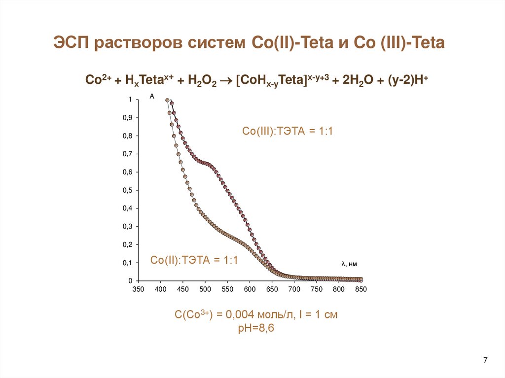 ЭСП растворов систем Co(II)-Teta и Co (III)-TetaCo2+ + НхTetaх+ + H2O2 CoНх-yTeta х-y+3 + 2H2O + (y-2)H+