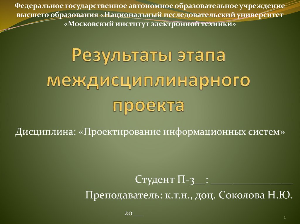 Федеральное государственное автономное образовательное учреждениевысшего образования «Национальный исследовательский университет