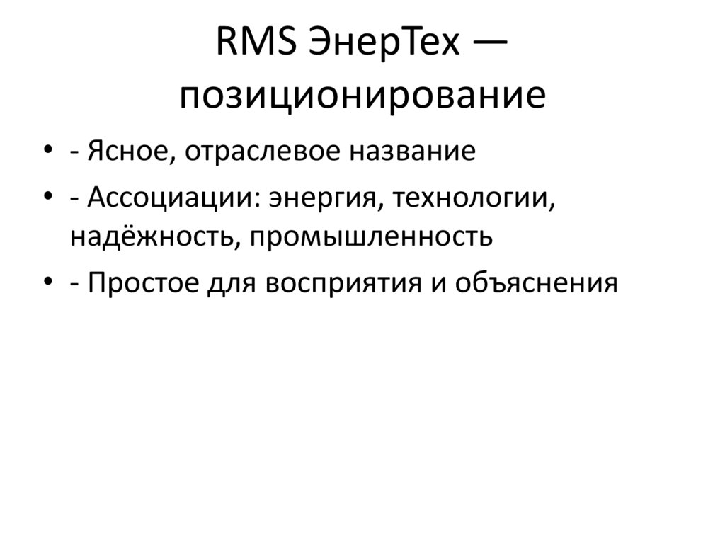 RMS ЭнерТех —позиционирование