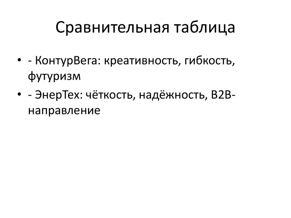Сравнительная таблица• - КонтурВега: креативность, гибкость,