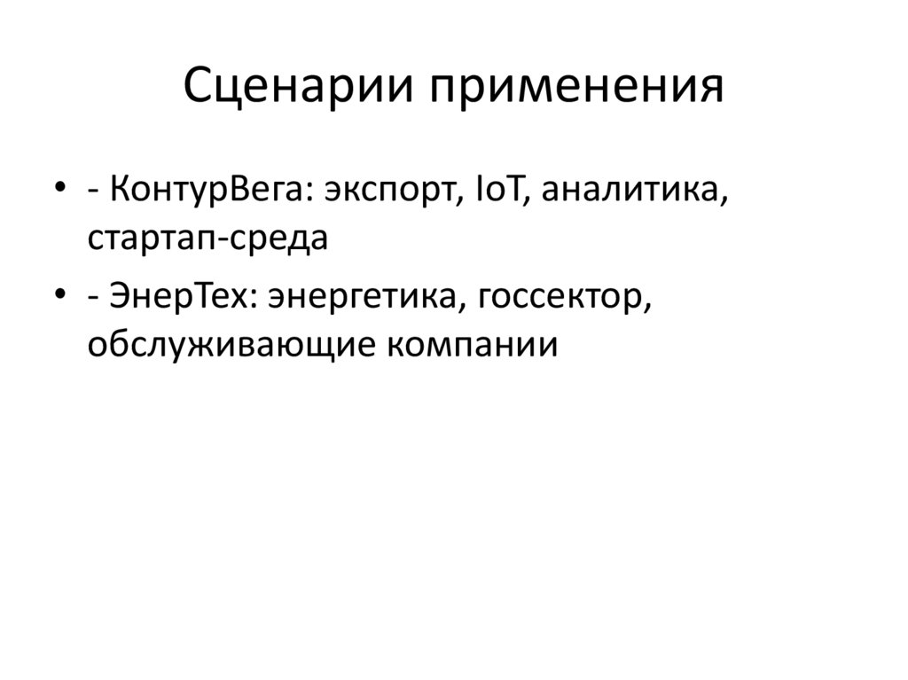 Сценарии применения• - КонтурВега: экспорт, IoT, аналитика,