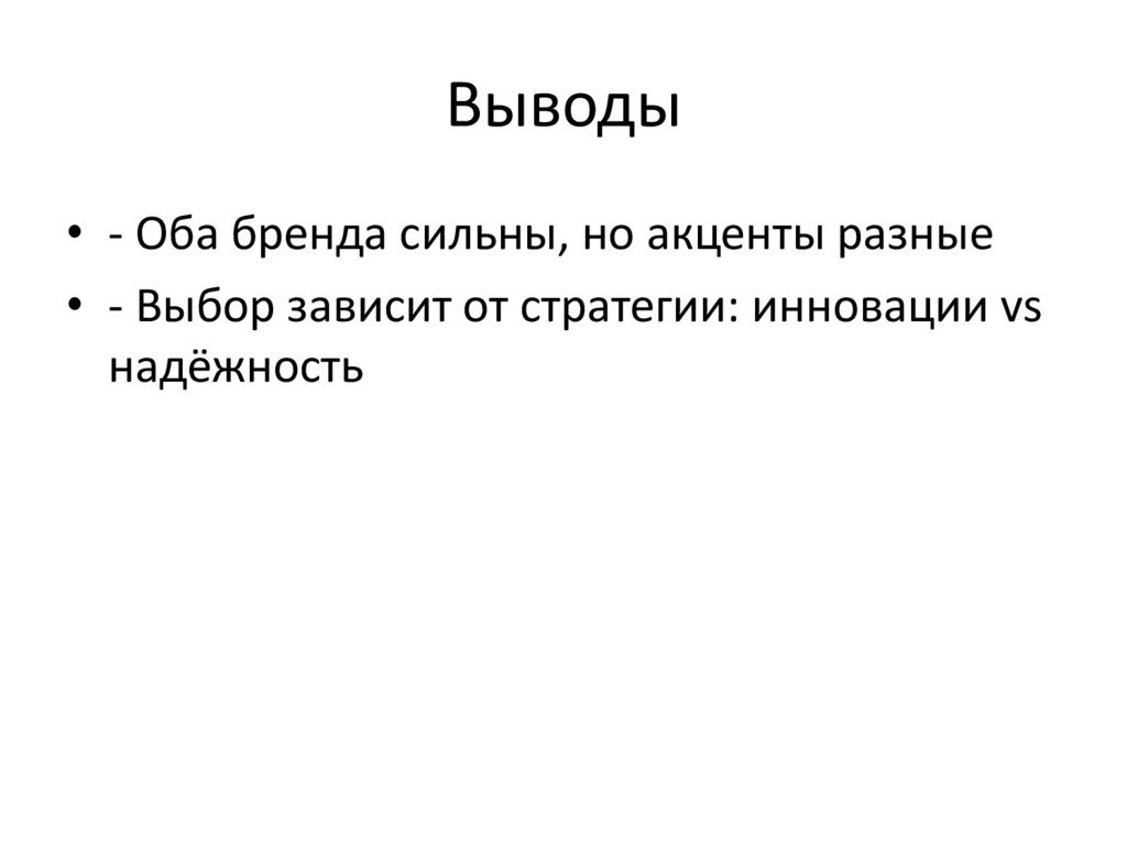 Выводы• - Оба бренда сильны, но акценты разные