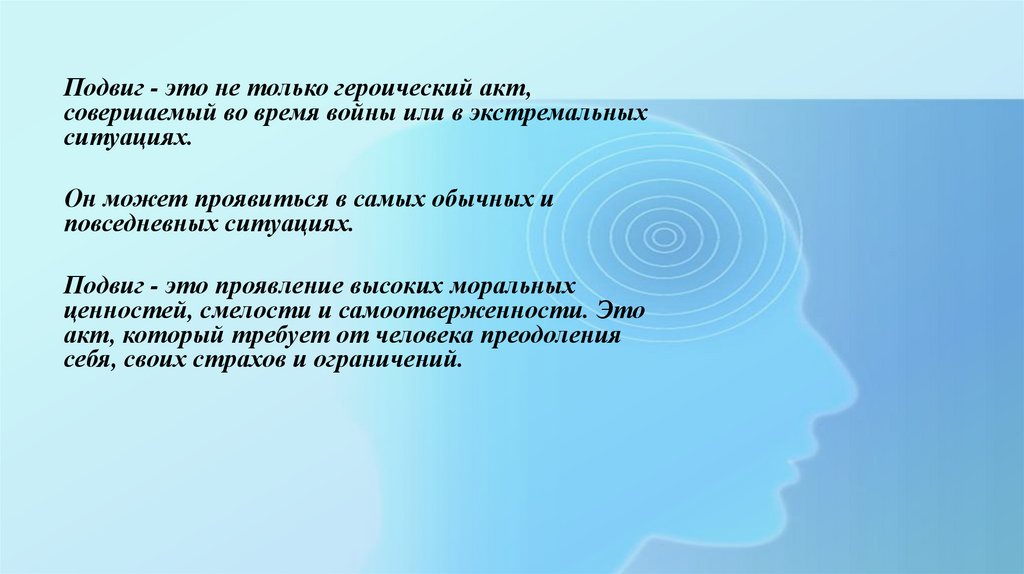 Подвиг - это не только героический акт,совершаемый во время войны или в экстремальных
