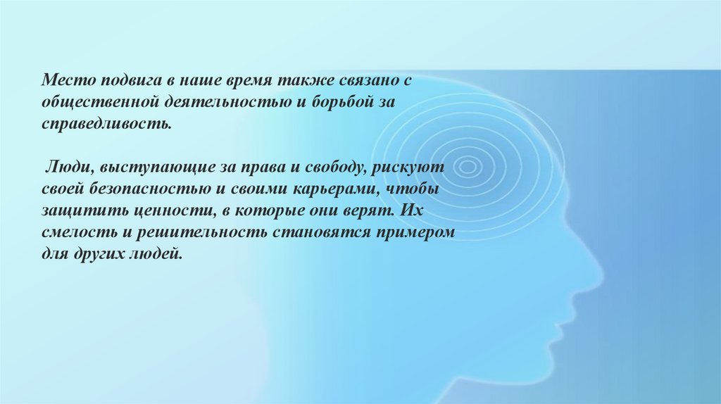 Место подвига в наше время также связано собщественной деятельностью и борьбой за