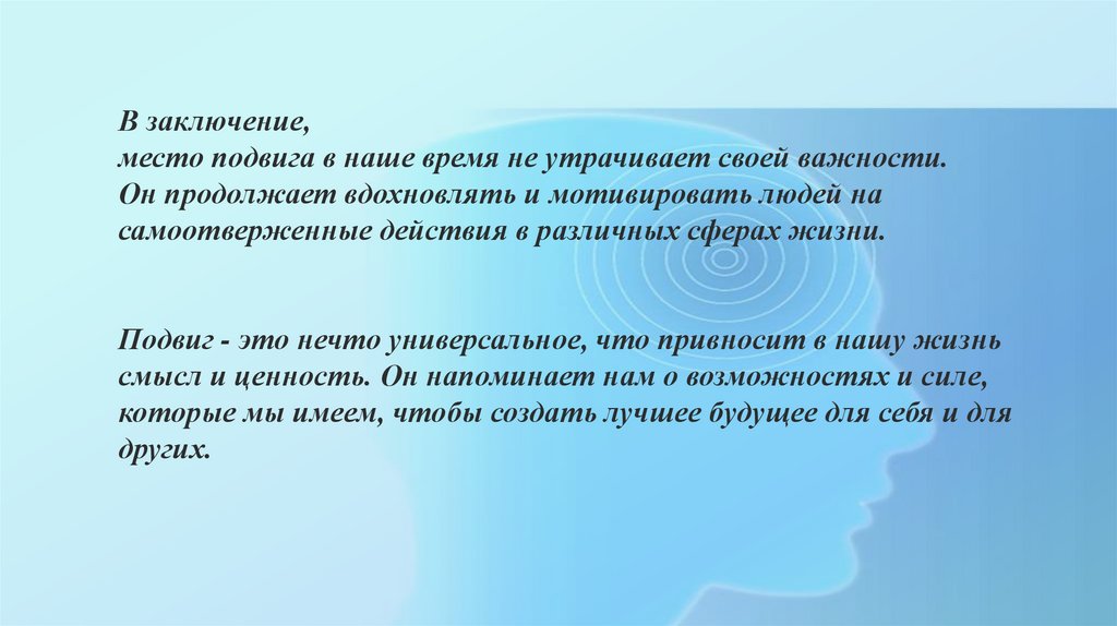 В заключение,место подвига в наше время не утрачивает своей важности.