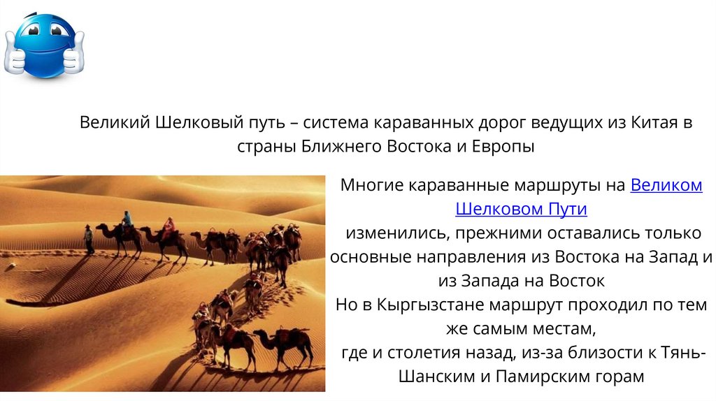 Великий Шелковый путь – система караванных дорог ведущих из Китая встраны Ближнего Востока и Европы