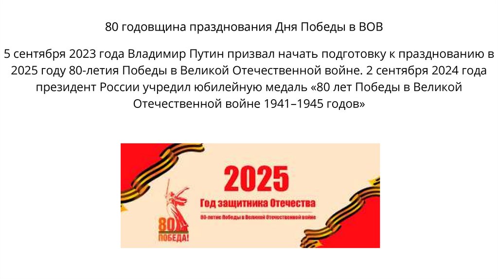 2025 году 80-летия Победы в Великой Отечественной войне. 2 сентября 2024 года