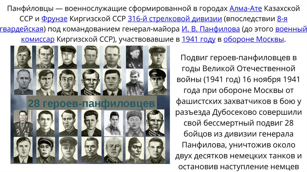 гвардейская) под командованием генерал-майора И. В. Панфилова (до этого военный