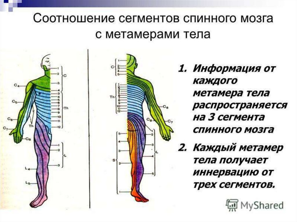 Каждый сегмент иннервирует 3метамера тела(поперечных отрезка)