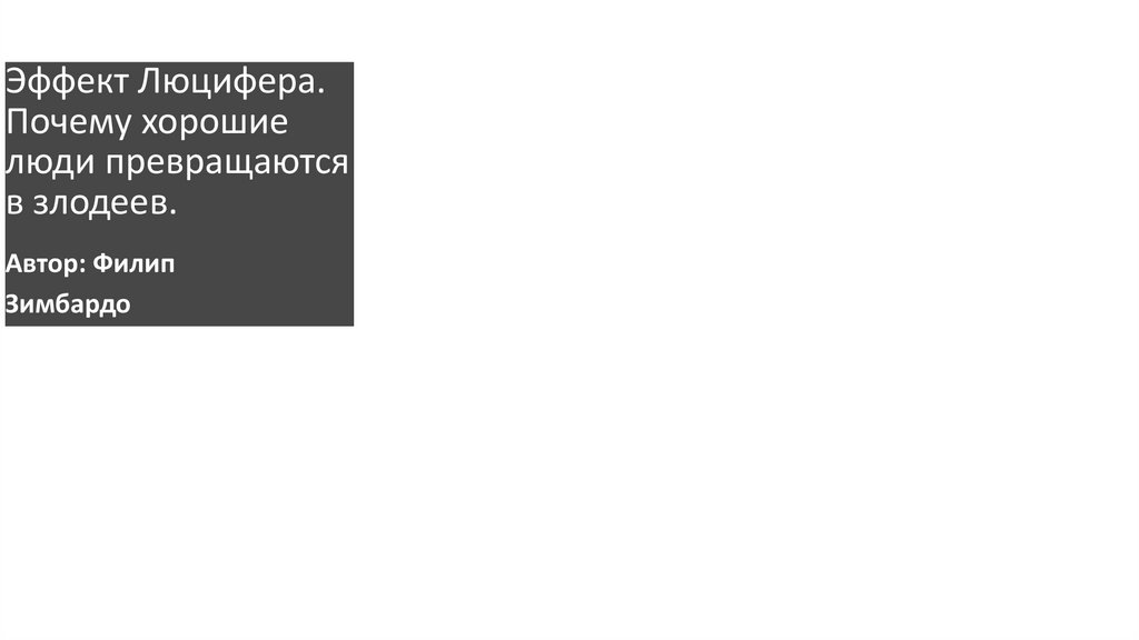 Эффект Люцифера. Почему хорошие люди превращаются в злодеев