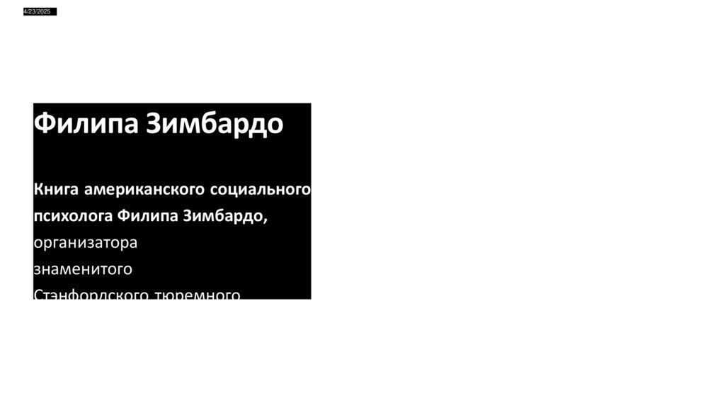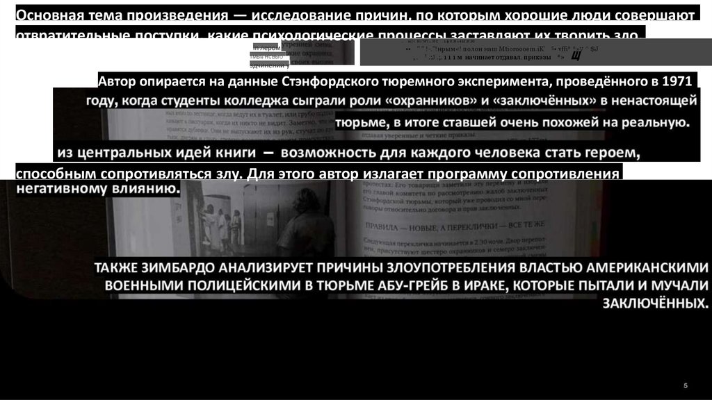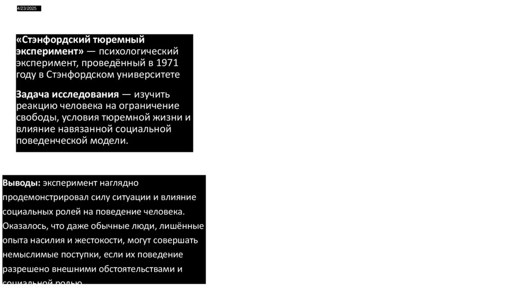 Автор опирается на данные Стэнфордского тюремного эксперимента, проведённого в 1971