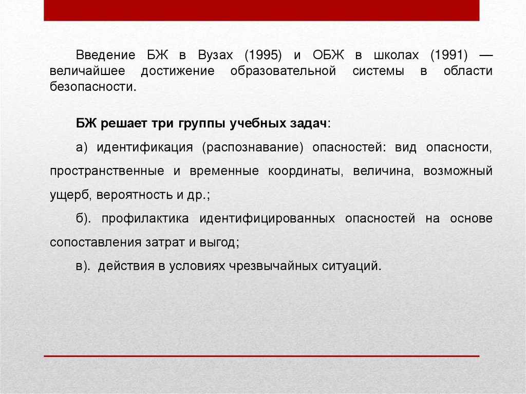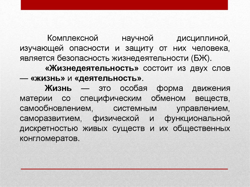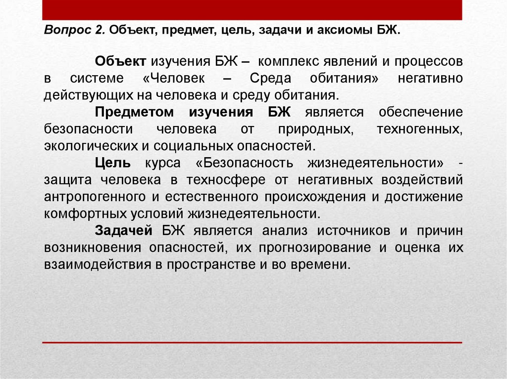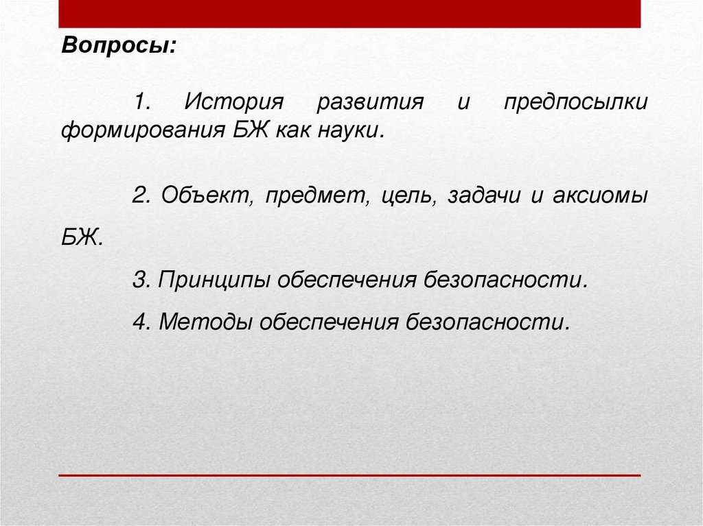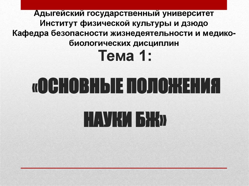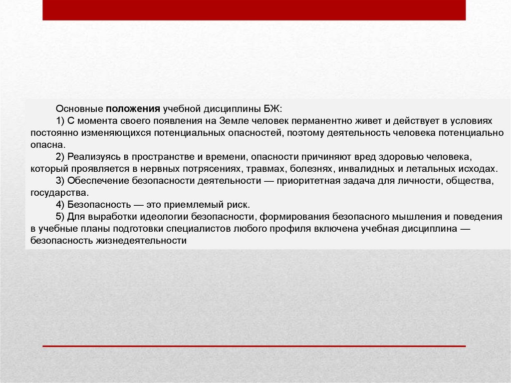 1. Тема 1: «ОСНОВНЫЕ ПОЛОЖЕНИЯ НАУКИ БЖ»