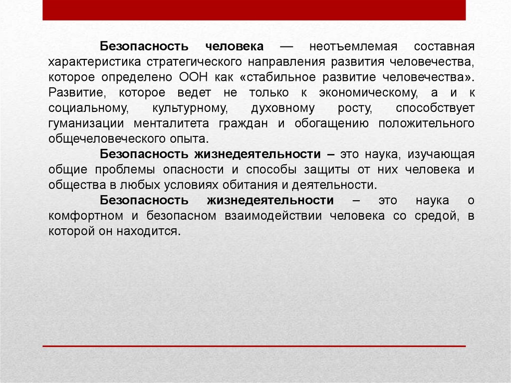 Безопасность человека — неотъемлемая составнаяхарактеристика стратегического направления развития человечества,