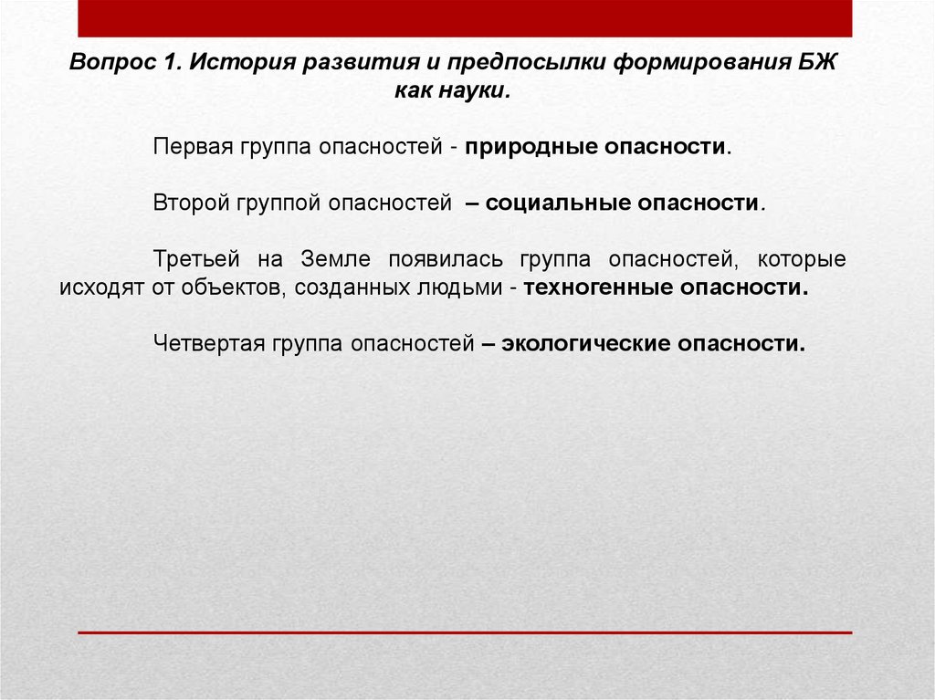 Вопрос 1. История развития и предпосылки формирования БЖкак науки.
