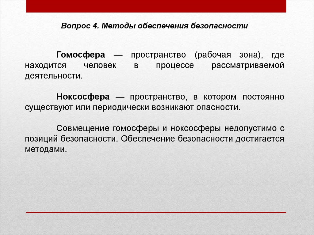 Вопрос 4. Методы обеспечения безопасностиГомосфера — пространство (рабочая зона), где