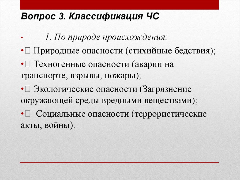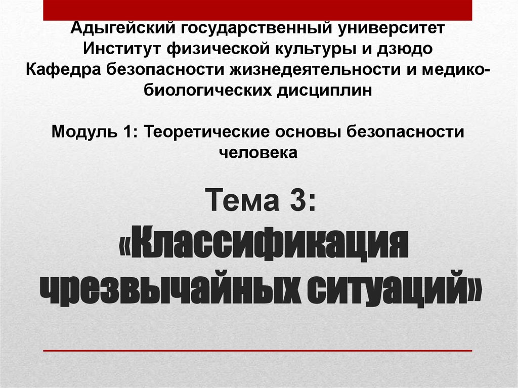 1. Тема 3: «Классификация чрезвычайных ситуаций»