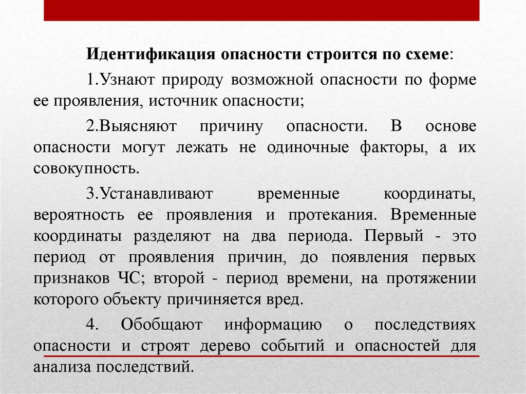 Идентификация опасности строится по схеме:1.Узнают природу возможной опасности по форме